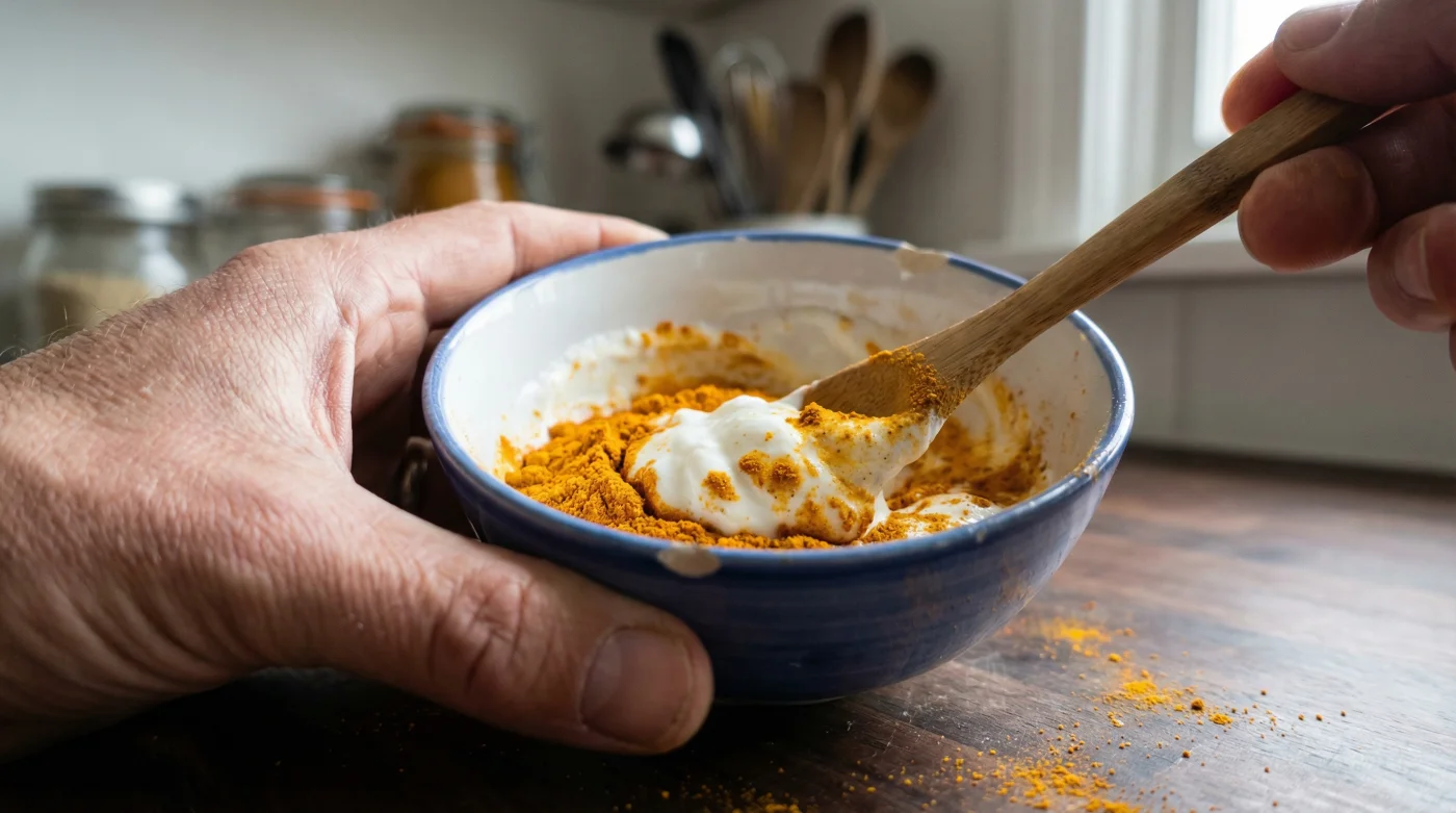 Bu kadim ritüel çok basit ama dikkat gerektiriyor. Tıpkı bir şefin mutfağında malzemelerine saygı duyması gibi, sen de cildine süreceğin her zerreyi hissetmelisin. Temiz, küçük bir cam veya seramik kase al. İçine tam yarım çay kaşığı organik toz zerdeçal ekle. Üzerine iki tatlı kaşığı tam yağlı, tercihen ev yapımı ya da süzme yoğurt koy. Yoğurdun dolaptan yeni çıkmış o ferahlatıcı serinliği, zerdeçalın ısınan ve dolaşımı hızlandıran doğasını mükemmel bir şekilde dengeler.