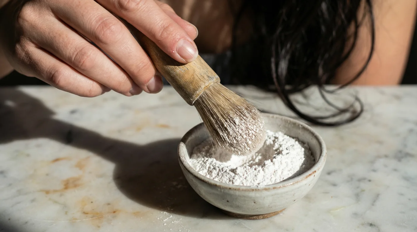Ararot tozu, talk pudrasının aksine saç derisinde beyaz bir kalıntı bırakmaz. Köklerdeki fazla yağı bir sünger gibi emer ve saniyeler içinde şeffaflaşarak saç renginle bütünleşir. Eğer saçların çok koyu renkliyse, içine bir çay kaşığı saf kakao tozu ekleyerek kendi kişiselleştirilmiş rengini yaratabilirsin. Bu basit hareket, toksik birikim yaratmadan gün boyu süren bir ferahlık hissi verir.